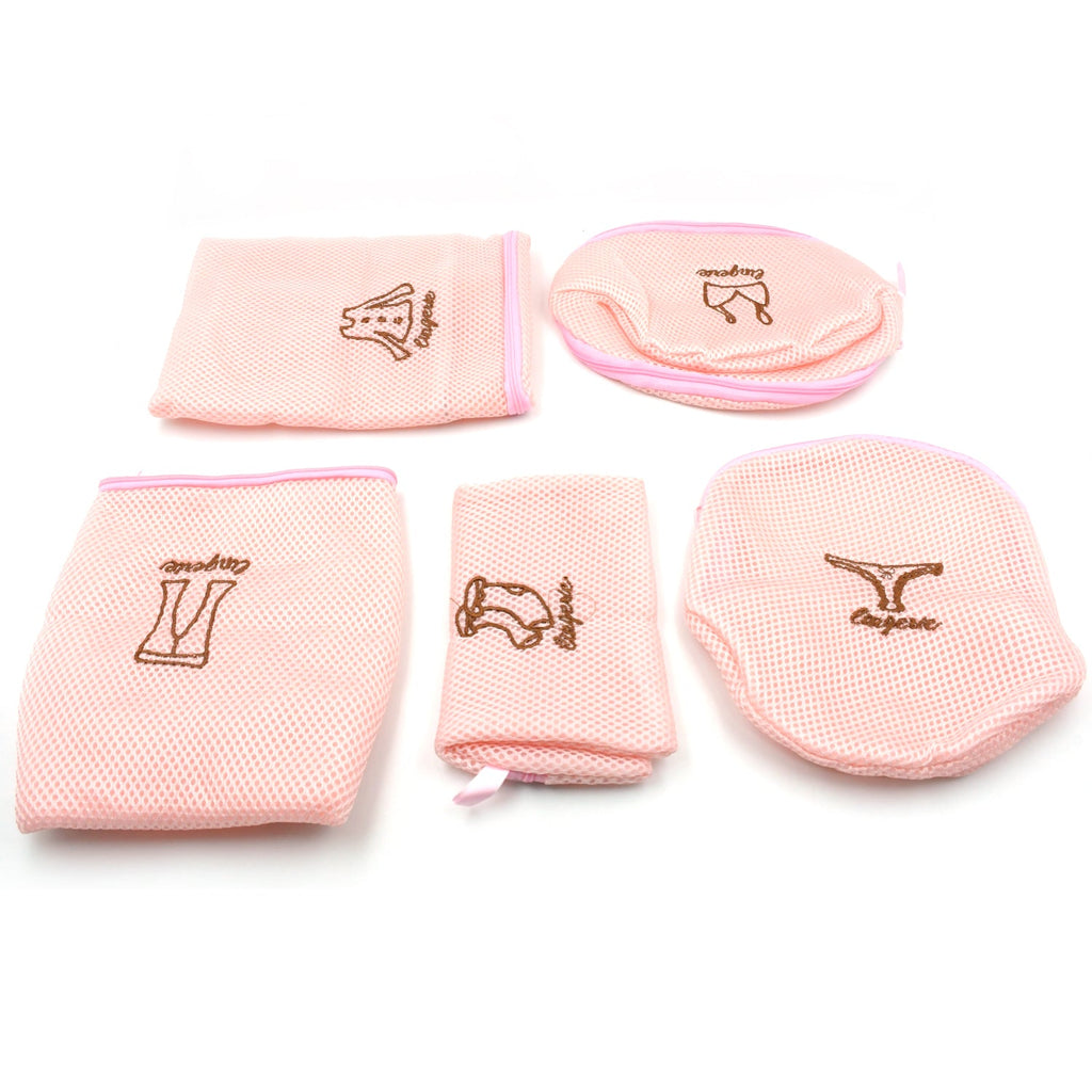 1211 5pc Zippered Mesh Laundry Wash Bags Foldable Delicate Lingerie Socks, Underwear Blouse, Hosiery, Stocking, and Lingerie Washing Machine Clothes Protection Net (5 Pc Set)