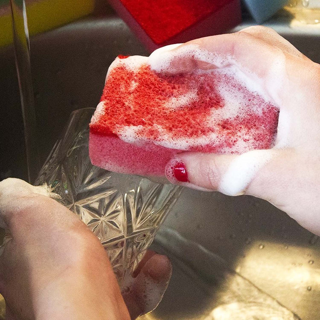 Wash Scrub Sponge clean after use, squeeze to dry. - It can quickly remove oil stains and dirt, and is very suitable for dishes, pots, stove, sinks, etc.