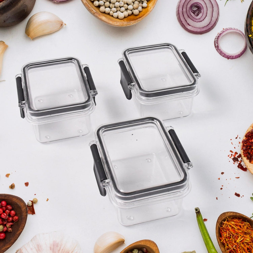 Kitchen Storage Container Set with Food Grade Plastic and Air Seal Lock Lid for Storage of Grocery, Spices, Dry fruits Use For Home, Office, Restaurant, Canteens (3-Piece Set / 250 ML)