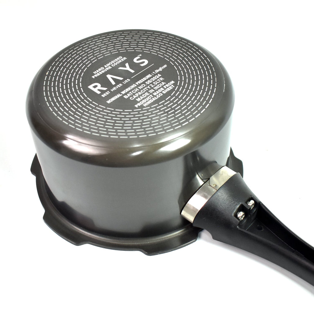 Aluminium Rays Black Beauty Pressure Cookers With Outer Lid Pressure Cooker, Heavy Bottom, Easy Open and Close, Healthy Cooking (Non-Induction Base) (2.5 Litres / 1-Year warranty)