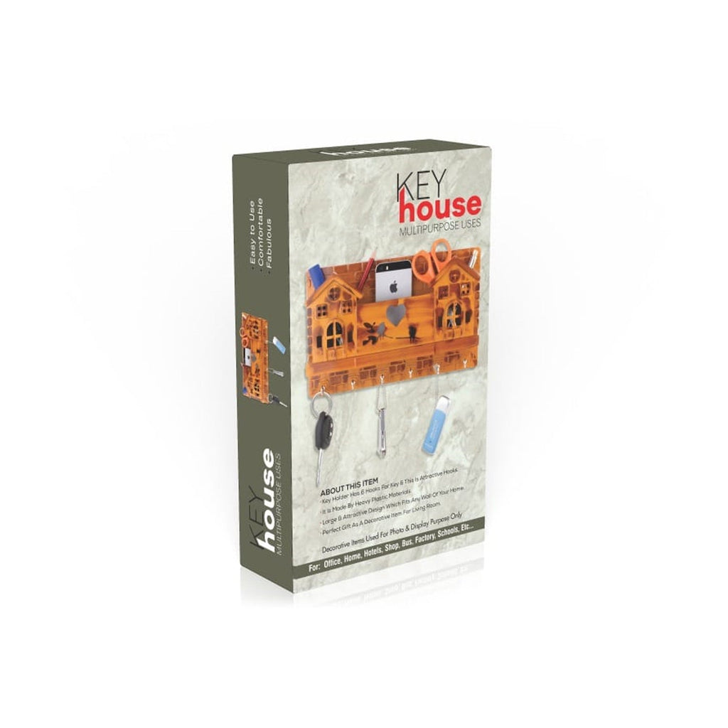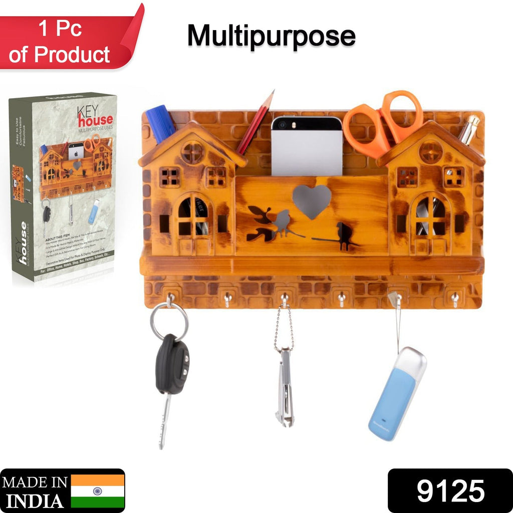 9125 6 Hooks House Design Wooden Key Stand for Entryway, Kitchen, Office, Mudroom Wall, Mount Decorative Keys Organizer Key Holder.